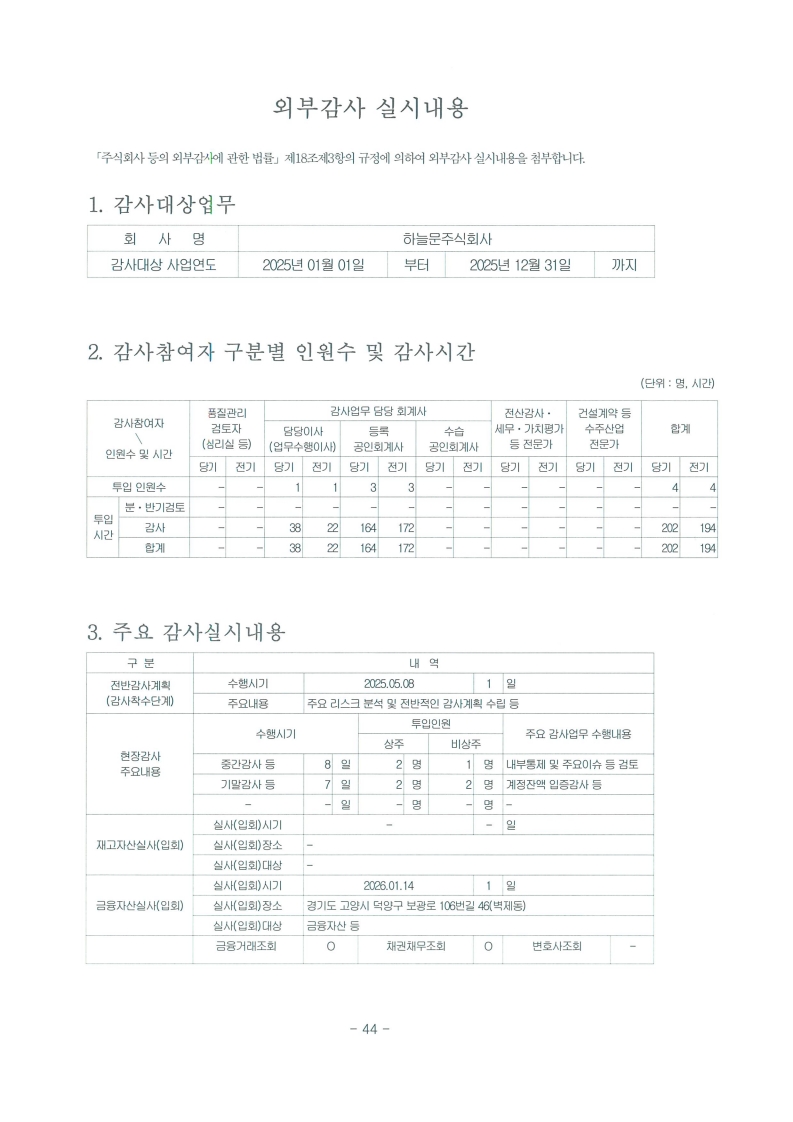 외부회계감사보고서