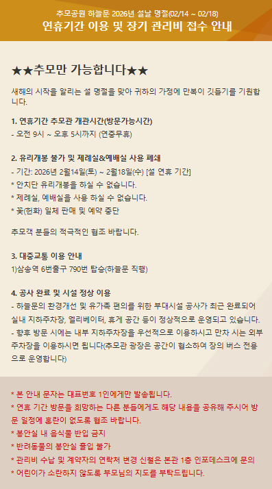 2026³â ¼³ ¿¬ÈޱⰣ(02/14~02/18 ÃÑ 5Àϰ£) ÀÌ¿ë ¾È³»