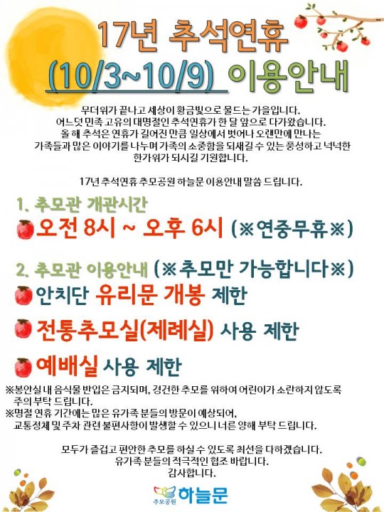 2017³â Ãß¼® ¸íÀý(10/3~10/9) ÀÌ¿ë¾È³»