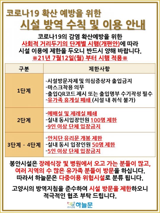 [Äڷγª19] »çȸÀû °Å¸®µÎ±â(°³Æí¾È)¿¡ µû¸¥ ½Ã¼³ ÀÌ¿ë ¾È³» (21³â 7¿ù12ÀÏ ºÎÅÍ Àû¿ë ½ÃÇà)