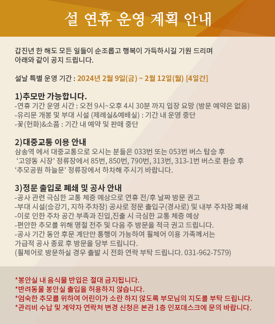 [°øÁö] Ãß¸ð°ø¿ø Çϴù® "¼³ ¿¬ÈÞ ¿î¿µ°èȹ" ¹× "¿µ±¸°ü¸®ºñ Á¾·á" ¾È³»
